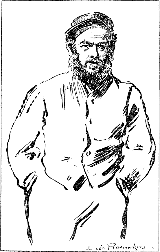Maar telkens als het getij en het weder dienstig geacht worden gaat de reddingboot weer uit; de mannen in hun oliegoed zwijgend op hun posten; aan het roer kapitein Jansen, die 336 menschenlevens redde in veertien jaar en wiens gelaat door dien langen strijd met orkanen en stormgolven in droeve trekken van hardnekkigheid, van ietwat-sombere vastberadenheid is gezet.