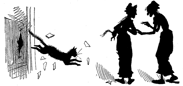 Auprès du pauvre invalide Descend la mère Michel Alors, le maître d'hôtel, Qu'une aveugle fureur guide, Saisit le chat au collet: «A nous deux, mon camarade! Ensemble allons, s'il vous plaît, Faire un tour de promenade.» |