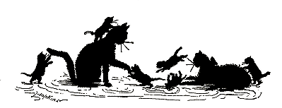 XXVI Dans un accès d'allégresse Il esquisse un entrechat, Tandis que le pauvre chat Sent augmenter sa détresse. XXVII Enfin, voici qu'on arrive Sur le pont: il faisait nuit, Et, de l'une à l'autre rive, On n'entendait aucun bruit. La nuit protège le crime! Soudain le panier fatal S'ouvrant, au fond du canal Laisse tomber la victime. |