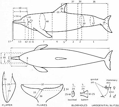 In March 1972, the Naval Undersea Center (NUC), San Diego, Calif. in cooperation with the National Marine Fisheries Service (NMFS), Tiburon, Calif. published a photographic field guide—The Whales, Dolphins and Porpoises of the Eastern North Pacific. A Guide to Their Identification in the Water, by S. Leatherwood, W.E. Evans, and D.W. Rice (NUC TP 282). This guide was designed to assist the layman in identifying the cetaceans he encountered in that area and was intended for use in two ongoing whale observer programs, NUC's Whale Watch and NMFS's Platforms of Opportunity. The rationale of these programs was that since oceanographers, commercial and sport fishermen, naval personnel, commercial seamen, pleasure boaters, and coastal aircraft pilots together canvas large areas of the oceans which scientists specializing in whales (cetologists) have time and funds to survey only occasionally, training those persons in species identification and asking them to report their sightings back to central data centers could help scientists more clearly understand distribution, migration, and seasonal variations in abundance of cetacean species. For such a program to work, a usable field guide is a requisite. Because the many publications on the whales, dolphins, and porpoises of this region were either too technical in content or too limited in geographical area or species covered to be of use in field identification, and because conventional scientific or taxonomic groupings of the animals are often not helpful in field identification, the photographic field guide took a different approach. Instead of being placed into their scientific groups, species were grouped together on the basis of similarities in appearance during the brief encounters typical at sea. Photographs of the animals in their natural environment, supplemented by drawings and descriptions or tables distinguishing the most similar species, formed the core of the guide.