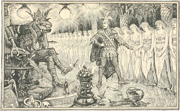 At first the coachman wouldn't say anything, but when the youth pressed him he told him that a huge dragon dwelt in the neighbourhood, and required yearly the sacrifice of a beautiful maiden. This year the lot had fallen on the King's daughter, and the whole country was filled with woe and lamentation in consequence.