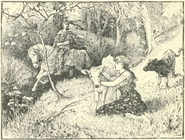 The Princess was quite overcome with terror and joy, and fell fainting at the feet of her deliverer. When she recovered her consciousness she begged the shepherd to return with her to her father, who would reward him richly. But the youth answered that he wanted to see something of the world, and that he would return again in three years, and nothing would make him change this resolve. The Princess seated herself once more in her carriage, and, bidding each other farewell, she and the shepherd separated, she to return home, and he to see the world.