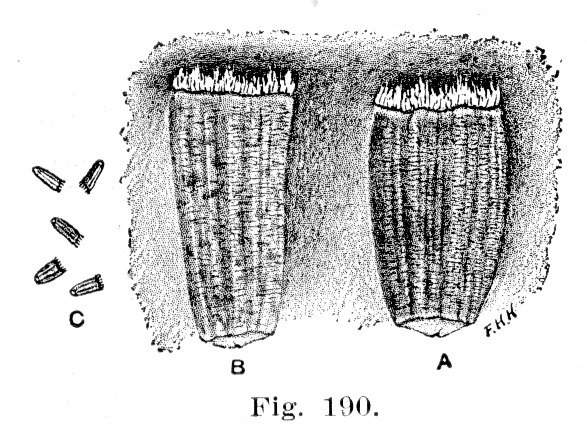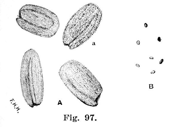 [Pg 103]The designer of this bulletin first had in mind something of the sort for the use of his students, not only the undergraduates, but others living on farms, or teaching in Michigan and elsewhere. Whoever grows seeds to sell, or buys seeds to sow, should be benefited by consulting the illustrations which are unsurpassed for accuracy by anything in this country. They were all made by Mr. F. H. Hillman. A hand lens costing from twenty cents to a dollar is almost indispensable in examining our seeds. The brief descriptions are necessarily made by using definite scientific terms, which are explained in a glossary at the close of the work. A few weeds are not illustrated, for the reason that the plants have ceased to produce seeds, such as the horse radish, and some of them are not conspicuously bad. Not far from half the illustrations are made from small seed-like fruits, likely to be mistaken for seeds, such as are produced by dandelions, burdocks, narrow-leaved dock, all grasses. Cuts of seeds of several clovers are inserted that students may learn to distinguished them from weeds too often mixed with them.