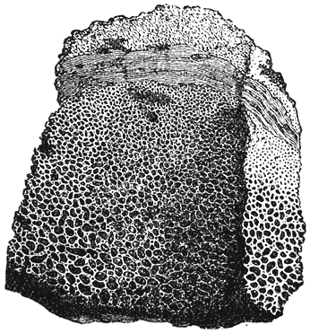 De St.-Paulus Rotsen schijnen van verre eene schitterend witte kleur te hebben. Deels is die toe te schrijven aan den mest eener groote menigte zeevogels, deels aan eene harde glinsterende zelfstandigheid met parelachtigen glans, welke de oppervlakte der rotsen bekleedt en nauw daarmeê verbonden is. Met den microscoop onderzocht, blijkt dit bekleedsel te bestaan uit talrijke uiterst dunne lagen, welker gezamenlijke dikte omstreeks het tiende van een inch bedraagt. Zij bevat veel dierlijke materie, en ongetwijfeld is de oorsprong er van toe te schrijven aan de werking van regen of fijnverdeeld zeeschuim op vogelmest. Op Ascension en op de Abrolhos Eilanden vond ik onder eenige kleine hoeveelheden guano zekere vertakte stalactietachtige lichamen, die op dezelfde wijze gevormd schenen als het dunne witte bekleedsel op deze rotsen. Het algemeen voorkomen [23]dezer vertakte lichamen geleek zoo nabij op zekere Nulliporae (eene familie van kalkhoudende zeeplanten), dat ik, onlangs in haast mijne collectie naziende, het verschil niet opmerkte. De bolvormige uiteinden der takken bezitten een parelachtig weefsel, evenals het verglaassel van tanden, maar zoo hard, dat het in spiegelglas krast. Ik wil hier vermelden, dat op een deel der kust van Ascension, waar groote hoeveelheden schelpzand zijn opgehoopt, het zeewater eene korst op de getijrotsen heeft afgezet, overeenkomende met zekere kryptogamische planten (Marchantiae), die dikwijls op vochtige muren worden gezien. De oppervlakte van het loof is fraai glanzig; en die deelen, welke onder de volle werking van het licht gevormd zijn, hebben eene gitzwarte, andere, daarentegen, die door klipranden beschaduwd worden, alleen eene grijze kleur. Aan verscheidene geologen heb ik monsters van deze korst laten zien; en allen meenden, dat zij van vulkanischen of plutonischen oorsprong waren! In hare hardheid en doorschijnendheid; in hare polijsting, welke die van de fraaiste oliva-schelp evenaart; in den onaangenamen geur, dien zij verspreidt, en in het verlies van hare kleur onder de blaaspijp, vertoont die korst eene nauwe verwantschap met nog levende zeeschelpdieren. Bovendien zijn bij zeeschelpen, naar men weet, die deelen welke door den mantel van het dier gewoonlijk bedekt en beschaduwd zijn, bleeker van kleur dan die welke aan het volle licht zijn blootgesteld, juist zooals ook met deze korst het geval is. Bedenken wij, dat kalk, hetzij als phosphorzuur- of als koolzuurzout, een bestanddeel vormt der harde deelen (als beenderen en schelpen) van alle levende dieren, dan is het een belangrijk physiologisch feit, stoffen te vinden harder dan het verglaassel van tanden, en gekleurde oppervlakken even goed gepolijst als dat eener nieuwe schelp, welke door anorganische middelen uit doode organische stof getransformeerd zijn, en bovendien in vorm sprekend op enkele lagere plantaardige producten gelijken.9 [24]