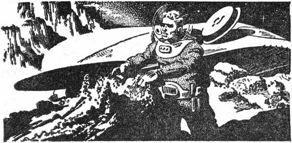 He looked around, still struggling. Light gravity, little weight, but he was so weak now, and still the rocket wasn't in sight. He crawled on his stomach, dragging the bulbous suit over the rock. He could get around the rock. He had to. Out of sight, but so near, was the warm human rocket.