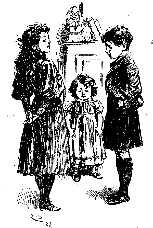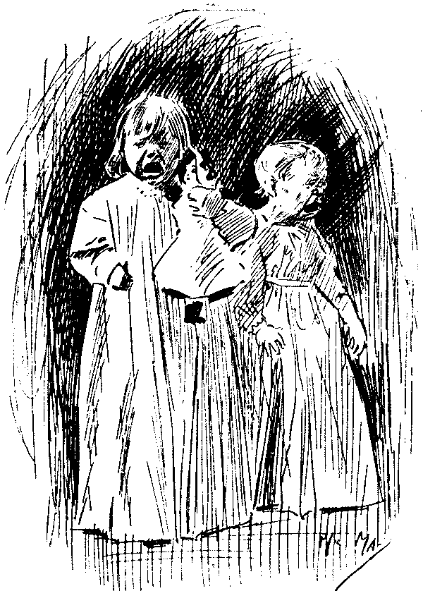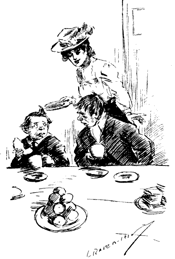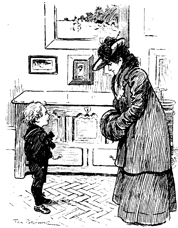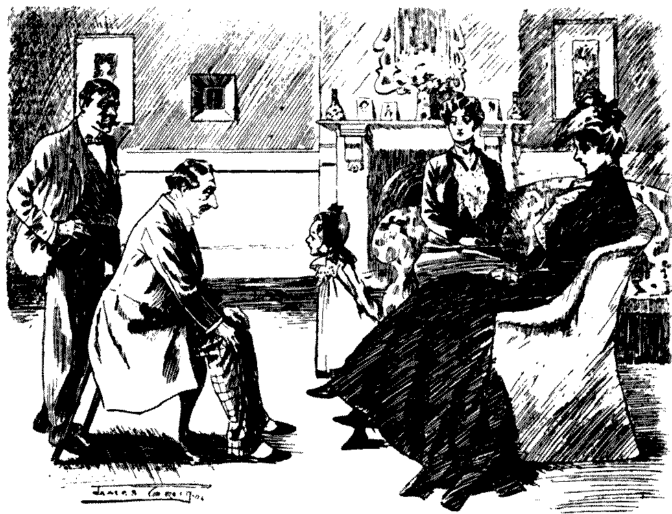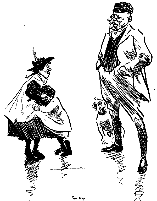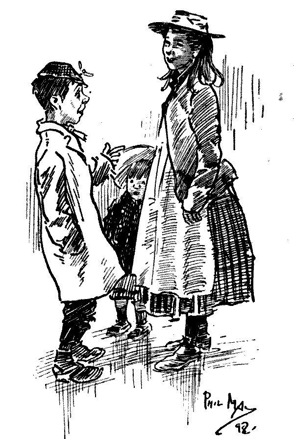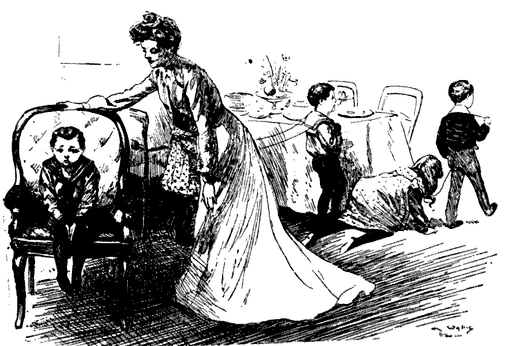The variety of individuality in the children, to whom we are here introduced, is noteworthy. In the days of Leech, downright impudence seems to have been a characteristic of the young; to-day it would seem children are better mannered, even if the enfant terrible is still thriving and[Pg 6] likely to do so. There are nice children here, and naughty ones; clever and dull children; pretty and ugly children—the mischievous are chiefly memories of last generation! Phil May's children are all clearly of the "gutter snipe" order, in which he delighted, full of character and a somewhat pathetic humour; but how clean and sweet and lovable are Du Maurier's or Mr. Lewis Baumer's! Mr. Raven-Hill seems to be attracted somewhat in the same direction as Phil May; but all are interesting, and their sayings and doings are eminently worthy to be thus permanently gathered into one volume.