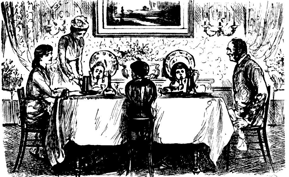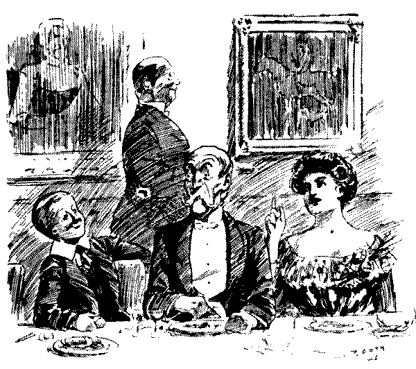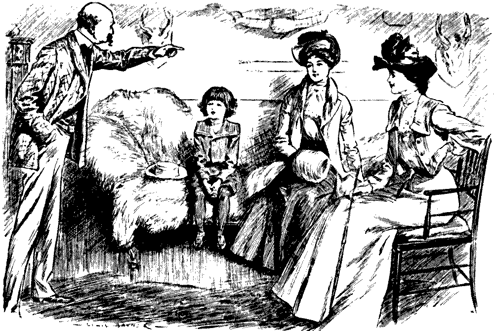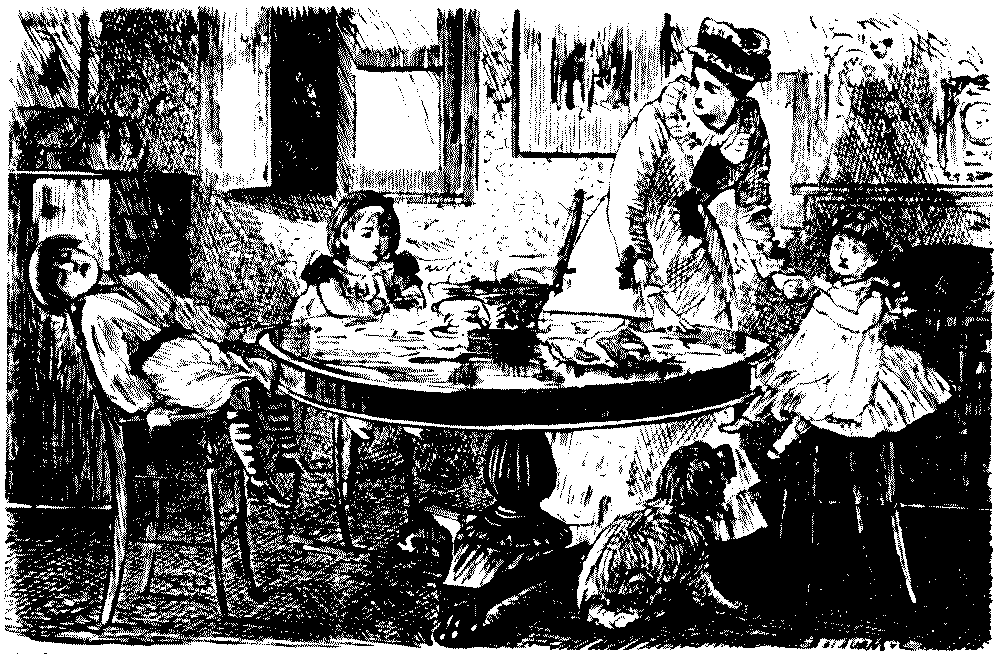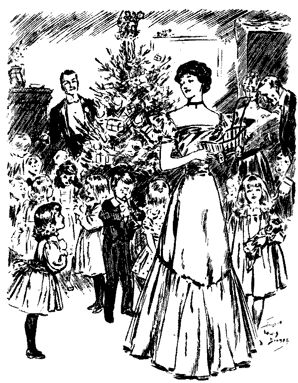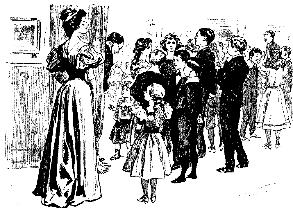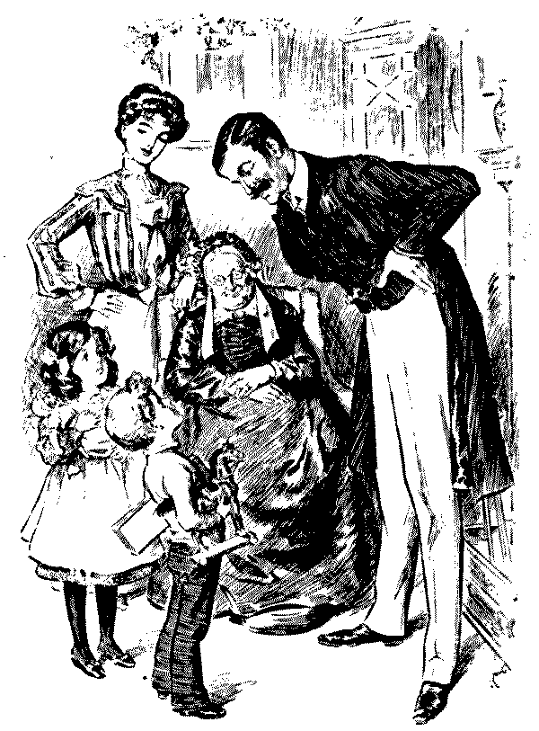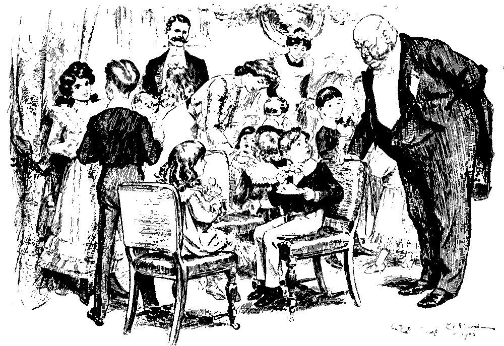 Yes, isn't it a pretty sight.... Oh, they're much too busy to talk at present.... Well, if you would take this cup of tea to my little girl, dear Mr. Muffett, it would be so——Yes, in the white frock.... Pray don't apologise—some tea upsets so easily, doesn't it?... Oh! I don't suppose it will show, really, and if it does.... Please, will everybody keep quite quiet for a minute or two; I haven't said my grace.... Don't you think it's unfair of nurse? She's handed me bread-and-butter twice running!... I mustn't eat sponge-cake, thank you. Bath buns are better for me than anything.... I was so ill after Christmas. They took my temperament with the barometer, and it was two hundred and six!... Oh! that's nothing. When I was ill, the doctor said mine was perfectly Norman!... Well, you might lower that candleshade a very little, perhaps,[Pg 178] Mr. Muffett.... Ah! don't blow it out.... Throw it into the fire, quick!... It doesn't matter in the least. No; I wouldn't trouble about the other shades, thanks.... Mother, will you read me the text out of my cracker?... But if you're going to be a soldier, you oughtn't to shut your eyes when you pull a cracker.... Oh! when I'm a soldier, I needn't go to parties.