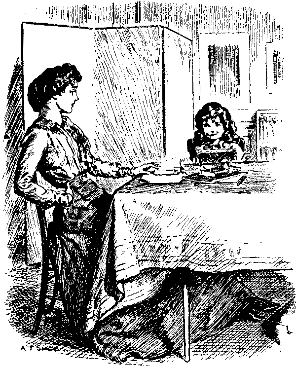 Dolly. "Oh, Miss Crawford, I don't fink mummie would let me do any more of those sums, 'cause in them you borrow ten and pay back only one, and that's cheating!"