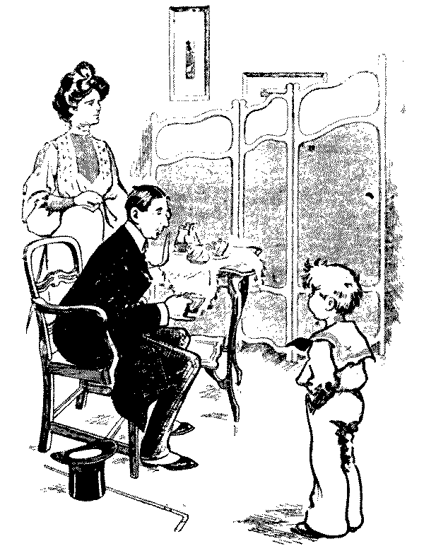 Mrs. Horn. Depend upon it, that's whooping-cough! Tommy, come here this minute. (Tommy emerges, crimson and crowing lustily; the mothers collect their offspring in dismay). Oh! Tommy, Tommy, don't tell me it's you! It—it can't be that, dear Mrs. Honeybun; he's been nowhere where he could possibly——You naughty boy, you know you are only pretending. Don't let me hear that horrid noise again.