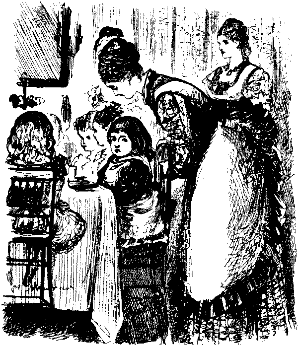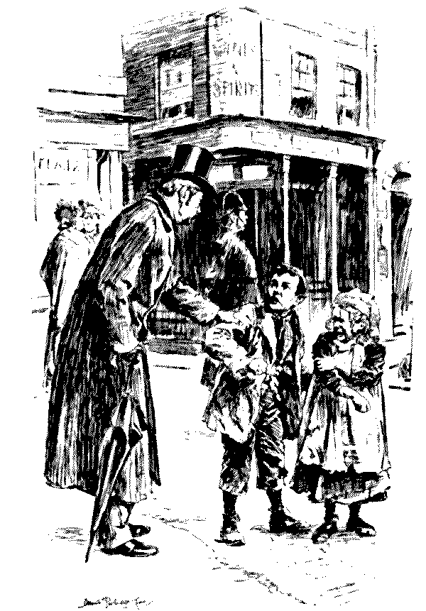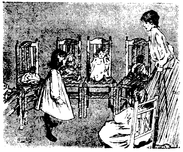 Katie (in consternation). "Oh, mother, how will Santa Claus do about that poor man's stockings?"