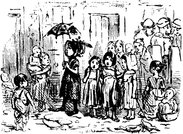 Mrs. Hornblower (one of a row of complacent matrons). Oh! not at all, dear Mrs. Honeybun, they're having such fun. Your Edwin and Arthur are only trying how many boys they can pile on the top of my Tommy.