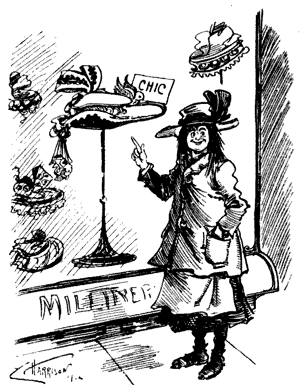 Little Girl (watching her mother fixing hatpins through her hat). "When will I be old enough, mummy, to have holes made in my head to keep my hat on?"