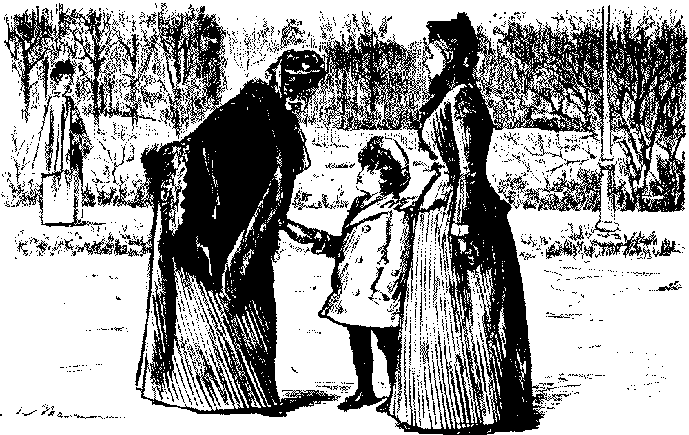 Mother. "Now, dear, why don't you run away and give grandpa a kiss?" Child (somewhat nonplussed by grandpapa's moustache and beard). "I don't see any place for it, mamma!"