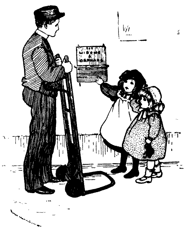 Porter. "Why is the little girl crying, missie?" Little Girl. "'Cos' she has put her penny in there, and no choc'late nor nuffing's come'd out!"