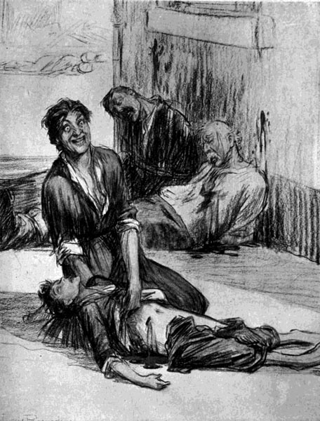 When the stories of the Belgian horror began to circulate in Holland, Raemaekers, like the rest of the humane world, refused to credit them. His own mother was German; he had spent many happy years in Germany; he knew the German peasant as a kindly and happy, if rather stupid fellow; it was incredible that such men could have done the awful things alleged. But the tales persisted, and although the evidence of the wracked and broken refugees who poured into his country by tens of thousands seemed irrefutable, he could not believe it, and readily seized upon the common supposition that the terrible stories were the product of the imagination of an overwrought and panic-stricken people. At length he could remain in doubt no longer, and quietly slipped over the frontier to verify for himself the truth or falsehood of the accusations that had already made Germany guilty of the foulest crimes ever perpetrated in the name of war since the dawn of civilization.