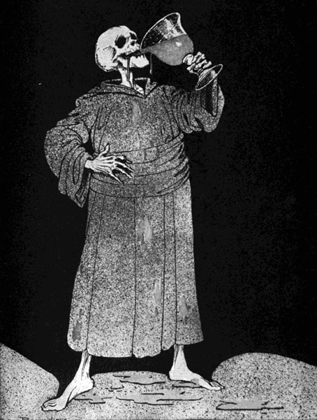 What he actually saw with his own eyes he does not tell. But a hundred of his early cartoons bear witness to the burning impression made upon his soul. Raemaekers, like others who have seen them, cannot speak of these unnamable horrors, but can only express his consuming pity or his white-hot rage in the medium that lies nearest his hand. On one occasion only has he publicly referred to his experiences in Belgium. It was at a dinner given him by the artists and literary men of London at the Savage Club, where, pointing to the portraits and trophies of Peary, Scott, Nansen, Shackleton, and other explorers which hang on the walls, he said: “I, too, have been an explorer, Gentlemen. I have explored a hell, and it was terror unspeakable.”