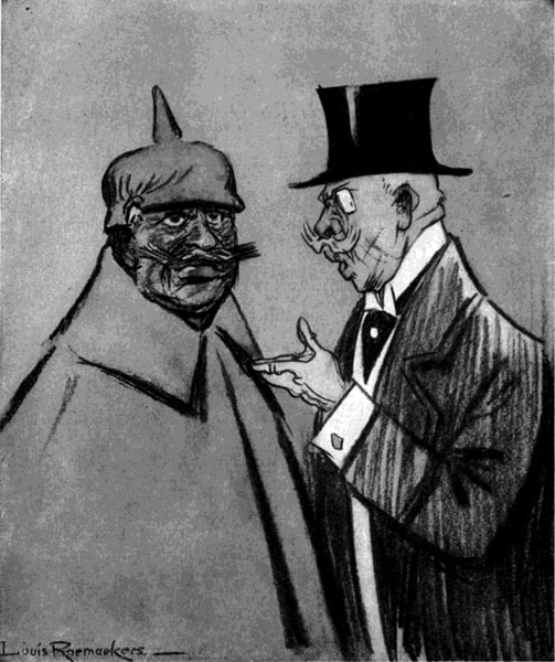 In all the welter of the tragic upheaval which is shattering institutions once thought immutable, condemning millions to physical death and awakening other millions to spiritual life, making staggering discoveries of unexpected human strength or weakness, thrusting men into fame one day or to oblivion the next, there has been nothing more dramatic than the sudden manifestation of the genius of the Dutchman, Louis Raemaekers, who, as Europe recoiled from the first shock of German barbarity, threw down his brush for his pencil and by the intensity of his spirit aroused the compassion and fired the anger of the world with his cartoons of the Belgian violation.