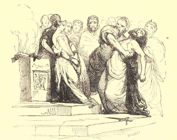 The lover, as he sought the presence of his mistress, might, in his enamoured idea of her beauty, fancy that his idolatry was a real one, and that he wooed Venus in the form of a mortal: or, in the tremor which then as now pervaded the lover's bosom, he might fear that Jove himself would prove a rival, and, swan-like, or in some other as picturesque a form, win her he sought for his own: and thus, every class of society, from the patrician to the peasant, must have been imbued with feelings which, while they believed them to be religious, we regard but as poetical.