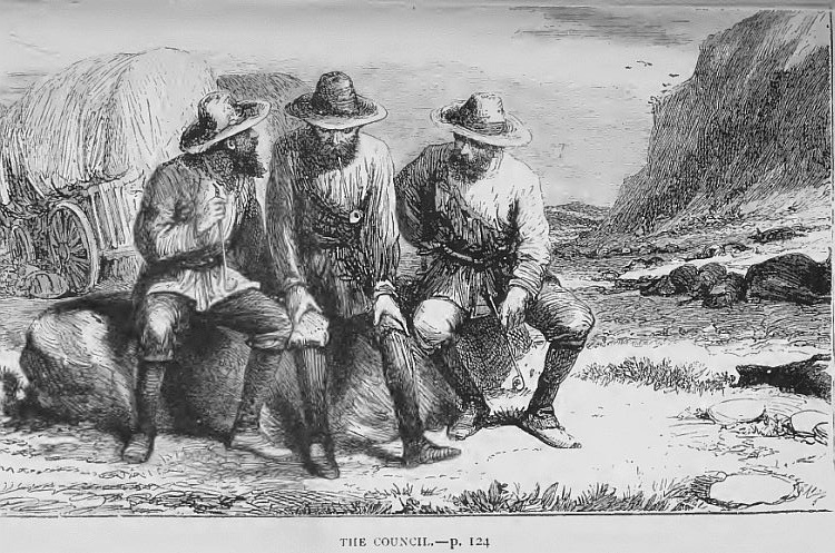 Meanwhile the waggons had been left standing just as they drew up, the oxen still under yoke. And now came the question, whether to “outspann” (Note 1), or not.