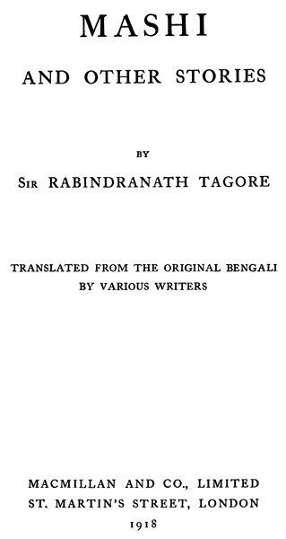 MASHI AND OTHER STORIES. Cr. 8vo.