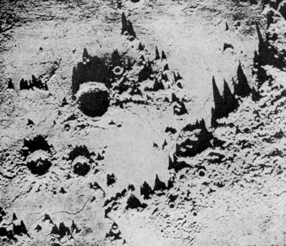 241. The moon's development.—The fine series of photographs of the moon obtained within the last few years at Paris, have been used by the astronomers of that observatory for a minute study of the lunar formations, much as geologists study the surface of the earth to determine something about the manner in which it was formed. Their conclusions are, in general, that at some past time the moon[Pg 374] was a hot and fluid body which, as it cooled and condensed, formed a solid crust whose further shrinkage compressed the liquid nucleus and led to a long series of fractures in the crust and outbursts of liquid matter, whose latest and feeblest stages produced the lunar craters, while traces of the earlier ones, connected with a general settling of the crust, although nearly obliterated, are still preserved in certain large but vague features of the lunar topography, such as the distribution of the seas, etc. They find also in certain markings of the surface what they consider convincing evidence of the existence in past times of a lunar atmosphere. But this seems doubtful, since the force of gravity at the moon's surface is so small that an atmosphere similar to that of the earth, even though placed upon the moon, could not permanently endure, but would be lost by the gradual escape of its molecules into the surrounding space.