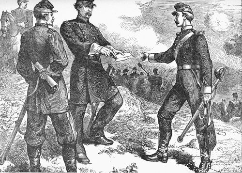 General Reynolds's Position. — Beginning of the Fight. — General Howard's Account. — Weiderick's Battery. — General Slocum at Two Taverns. — Howard's Messages. — General Hancock's Arrival. — Color-Bearers of the Nineteenth Indiana. — Arrival of the Third Corps. — Second (p. x) Day. — General Meade on the Field. — The Cemetery. — Major Howard. — Ride along the Lines. — Stannard's Brigade. — Meade's Head-Quarters. — Position of the Second Corps. — The Third Corps. — Sickles's Position at Noon. — Lee's Intentions. — Confidence of the Rebels. — Longstreet's Command. — His Plan. — Half past Three. — The Attack. — Resistance of the Third Corps. — McGilvery's Batteries. — The Ninth Massachusetts Battery. — Barnes's Division. — The Regulars. — Resistance of the Pennsylvania Reserves. — Hood's Advance. — Colonel Chamberlain's Position. — Slocum's Movement. — Doubleday and Williams. — Men of Vermont. — Fourteenth Maine. — Louisiana Tigers. — Third Day. — The Morning Cannonade. — Rebel Prisoners. — Fight on Culp's Hill. — Cavalry Operations. — Lee's Preparations for the last Attack. — Position of the Troops. — Scene at Meade's Head-Quarters. — The Cannonade. — Howard's Batteries. — Hancock wounded. — The Vermont Regiments. — Repulse of the Rebels. — Scenes along the Lines. — In the Rebel Lines. — Midnight. — After the Battle. — Lee's Retreat. — Meade's Movements. — Lee at Williamsport. — Crossing the Potomac. — Battle at Falling Waters. 269