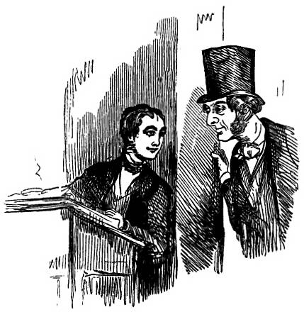 Jeames, with folded legs, leaning against the door-pillar of his master's abode, looked forth musingly upon the latter tranquil sight; while a spectator, clinging to the railings, examined the former scene. Policeman X passing, gave his attention to neither, but fixed it upon the individual holding by the railings, and gazing into Sir Francis Clavering's dining-room, where Strong was laughing and talking away, making the conversation for the party.