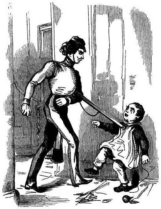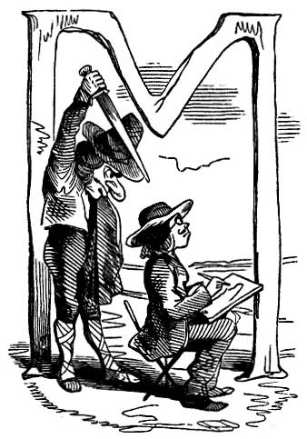 X marched up resolute, with one Berlin glove stuck in his belt-side, and Jeames simply pointed with his index finger to the individual who was laughing against the railings. Not one single word more than "Pleaceman," did he say, but stood there in the calm summer evening, pointing calmly: a grand sight.
