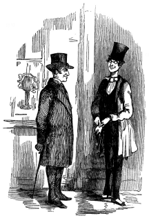 The young gentleman's company or his tobacco did not appear to be agreeable to Major Pendennis, who eyed him askance several times, and with a look which plainly indicated that he wished Mr. Foker would [pg 392] take his leave; but Foker hung on resolutely to the uncle and nephew, even until they came to the former's door in Bury-street, where the major wished the lads good-night.