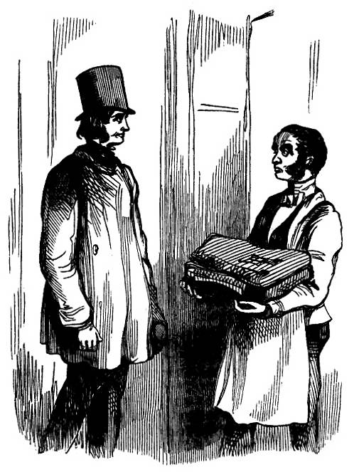 First they went into the gorgeous dining-room, fitted up, Lady Clavering couldn't for goodness gracious tell why, in the middle-aged style, "unless," said her good-natured ladyship, laughing, "because me and Clavering are middle-aged people;" and here they were offered the copious remains of the luncheon of which Lady Clavering and Blanche had just partaken. When nobody was near, our little Sylphide, who scarcely ate at dinner more than the six grains of rice of Amina, the friend of the Ghouls in the Arabian Nights, was most active with her knife and fork, and consumed a very substantial portion of mutton cutlets: in which piece of hypocrisy it is believed she resembled other young ladies of fashion. Pen and his uncle declined the refection, but they admired the dining-room with fitting compliments, and pronounced it "very chaste," that being the proper phrase. There were, indeed, high-backed Dutch chairs of the seventeenth century; there was a sculptured carved buffet of the sixteenth; there was a sideboard robbed out of the carved work of a church in the Low Countries, and a large brass cathedral lamp over the round oak table; there were old family portraits from Wardour-street and tapestry from France, bits of armor, double-handed swords and battle-axes made of carton-pierre, looking-glasses, statuettes of saints, and Dresden china—nothing, in a word, could be chaster. Behind the dining-room was the library, fitted with busts and books all of a size, and wonderful easy chairs, and solemn bronzes in the severe classic style. Here it was that, guarded by double [pg 380] doors, Sir Francis smoked cigars, and read "Bell's Life in London," and went to sleep after dinner, when he was not smoking over the billiard-table at his clubs, or punting at the gambling-houses in Saint James's.