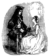 On the day appointed, Major Pendennis, who had formed no better engagement, and Arthur, who desired none, arrived together to dine with Sir Francis Clavering. The only tenants of the drawing-room when Pen and his uncle reached it, were Sir Francis and his wife, and our friend Captain Strong, whom Arthur was very glad to see, though the major looked very sulkily at Strong, being by no means well pleased to sit down to dinner with Clavering's d——d house-steward, as he irreverently called Strong. But Mr. Welbore Welbore, Clavering's country neighbor and brother member of Parliament, speedily arriving, Pendennis the elder was somewhat appeased, for Welbore, though perfectly dull, and taking no more part in the conversation at dinner than the footman behind his chair, was a respectable country gentleman of ancient family and seven thousand a year; and the major felt always at ease in such society. To these were added other persons of note: the Dowager Lady Rockminster, who had her reasons for being well with the Clavering family, and the Lady Agnes Foker, with her son Mr. Harry, our old [pg 385] acquaintance. Mr. Pynsent could not come, his parliamentary duties keeping him at the House, duties which sate upon the two other senators very lightly. Miss Blanche Amory was the last of the company who made her appearance. She was dressed in a killing white silk dress, which displayed her pearly shoulders to the utmost advantage. Foker whispered to Pen, who regarded her with eyes of evident admiration, that he considered her "a stunner." She chose to be very gracious to Arthur upon this day, and held out her hand most cordially, and talked about dear Fairoaks, and asked for dear Laura and his mother, and said she was longing to go back to the country, and in fact, was entirely simple, affectionate, and artless.