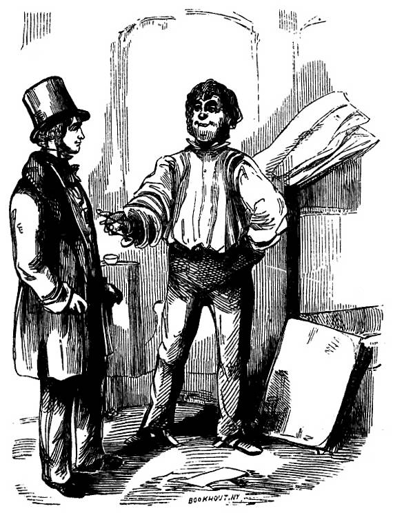 The individual, who was in perfect good humor, did not appear to hear one word which Policeman X uttered, but nodded and waggled his grinning head at Strong, until his hat almost fell from his head over the area railings.