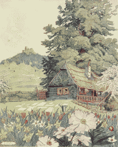 Inside the little hut, everything was as clean and orderly as one would find in the castles of the nobility, where many servants toiled and swept. Over the thatched roof an old lime tree spread its friendly branches, and all day long there sounded about the fragrant buds and blossoms sounded the cheerful humming of swarms of grateful bees.