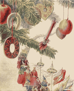 Now, one year, it was the day before Christmas. The snow had drifted against the little house clear to the eaves. As was her custom, she had brought from the forest a little Christmas tree and, having set it in a box, in earth carried from the wood, began to trim it. She hung from the branches gilded nuts and draped the tree with festoons of colored paper. Then, she fastened tiny, wax candles to the branches and then she peeled some apples and, finally, lighted the little candles, thinking of the used to dance and play olden days at home when they danced and played around the Christmas tree. The fire burned cheerily in the broad hearth with its green glass tiles. The room was warm and filled with the odor of mint and of lavender. As she sat thus, alone before the tree, presently, her head fell forward upon her hands which rested upon the linen press, and she slept.