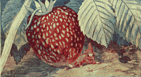 Besides all these pleasant things, the garden was full of roses, mignonette and tall mallow. Close to the fence which ran all about it, grew gooseberries, currants and raspberries; and in the very middle of the garden was a bed of luscious red strawberries, flanked by rows of cabbages, lettuce and peas. Against the walls of the hut, between the windows, old, gnarled vines ran clear to the eaves, bearing bunches of delicious grapes.