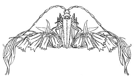 The leaf came nearer; but it proved to be not a leaf at all, but a beautiful sledge drawn by four black crickets. On the box, sat a speckled coachman and, beside him, the footmen—centipedes, while, behind, nestled a most beautiful lady, all wrapped up in the green and black fur of a butterfly caterpillar. The little bells were ringing on the horses and the coachman snapped his whip as they approached the Hamster.