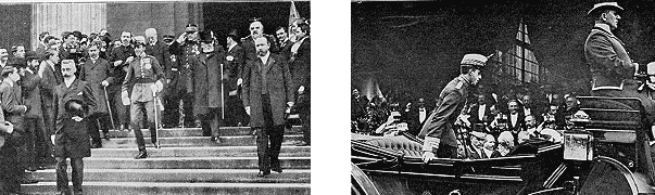 Le premier salut du roi Alphonse XIII sortant de la gare du Bois de Boulogne.