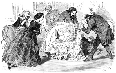Camille étend la petite fille sur ses genoux; Madeleine apporte de l'eau qu'elle a été chercher dans un fossé; Camille lave et essuie avec son mouchoir le sang qui inonde le visage de l'enfant, et ne peut retenir un cri de joie lorsqu'elle voit que la pauvre petite n'a pas de blessure.