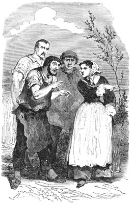 Pendant que, songeant uniquement à elle, elle choisissait ainsi cet âne qu'elle croyait préférable aux autres, Nicaise et son fils, qui devaient accompagner la cavalcade, plaçaient les provisions dans deux grands paniers, qu'on attacha sur le bât de l'âne noir.
