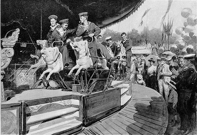 Les forains eux-mêmes deviennent des «réguliers», et le saltimbanque, en s'enrichissant, s'embourgeoise. Sur le boulevard, entre deux roulottes toutes neuves dont les portes d'entrée se faisaient face, une jeune femme, d'excellente mine, apprêtait le déjeuner. Dans l'une des voitures, les fourneaux bien astiqués où fumait un odorant fricot; le couvert dressé sur une nappe blanche; dans l'autre, un mobilier presque cossu de petit salon bourgeois; un piano, des vases pleins de fleurs et, tout au fond, le lit de cuivre de la chambre à coucher tendue de cretonne claire. Je demandai à la jeune femme: «Combien cela coûte-t-il, une roulotte?» Elle eut un sourire modeste: