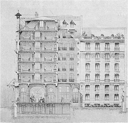 La nouvelle maison aura six étages, sa façade sera élégante. Le sous-sol, surélevé, sera occupé par les cuisines, les lavabos, etc. Le rez-de-chaussée, d'une hauteur de plafond de 5 mètres, comprendra trois grandes divisions communiquant largement entre elles, un salon de travail et de lecture, un hall vitré et une salle de restaurant; une grande cour de 200 mètres est ménagée entre les bâtiments. Toute cette partie sera accessible aux locataires de la maison, une centaine environ, et aussi aux jeunes filles appartenant ou non à l'administration des postes et faisant partie du cercle. Par ce moyen, l'oeuvre étendra son action utile à un très grand nombre de personnes. Les chambres seront vastes, bien aérées, chauffées à la vapeur. Le mobilier modern-style qui les garnira sera fort coquet.