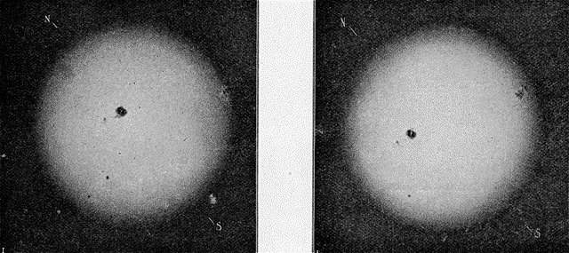 Une tache énorme, bien visible à l'oeil nu, vient d'apparaître à la surface du soleil (à la latitude de 12° dans l'hémisphère boréal), au méridien central duquel elle est passée le 16 juillet.