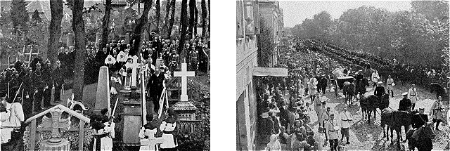 | A Saverne: obsèques du commandant français Schaeffer, en présence d'une délégation officielle de troupes allemandes. | A Moscou: obsèques du comte Chouvalof, préfet de police, assassiné. Phot. A. Bakouline. |