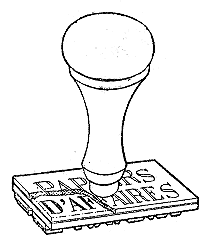 3° L'opérateur peut déterminer avec précision la position et l'endroit qu'occupera l'impression sur le document à timbrer: en effet, l'épreuve-modèle sur la griffe coïncide fidèlement avec les caractères qu'elle recouvre exactement; c'est comme si le corps des lettres, chiffres, etc., traversait la plaquette de la griffe.