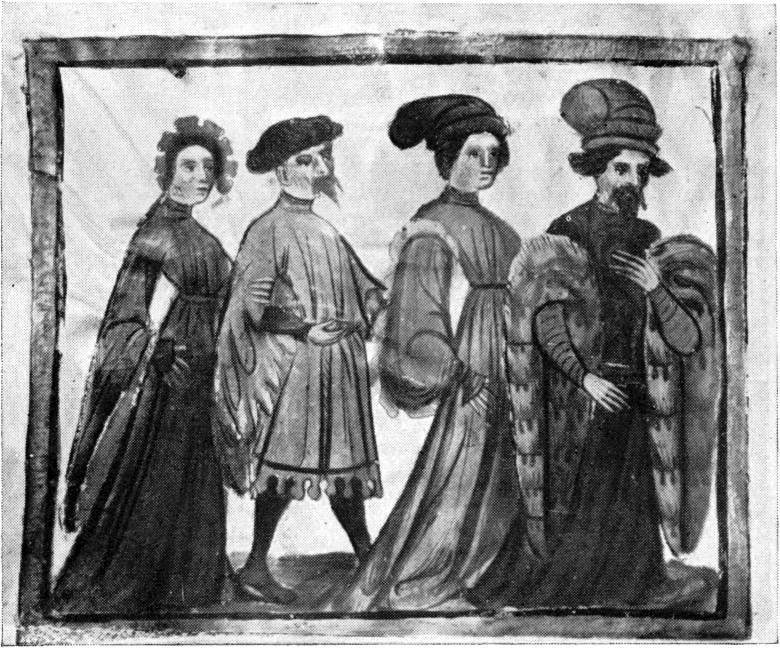 Na de bruiloft volgden nog de „navetjes”, ook plachten de jonggetrouwden bezoeken te brengen aan magen en vrienden, binnenlandsche reisjes, waaraan toen zooveel meer vast zat dan nu, maar waarvan nog zoo kinderlijk, zoo volop in de ongerepte natuur genoten werd. Dan loopen echter de wittebroodsweken ten einde, de speelman is van het dak, het gewone leven herneemt zijn eischen.