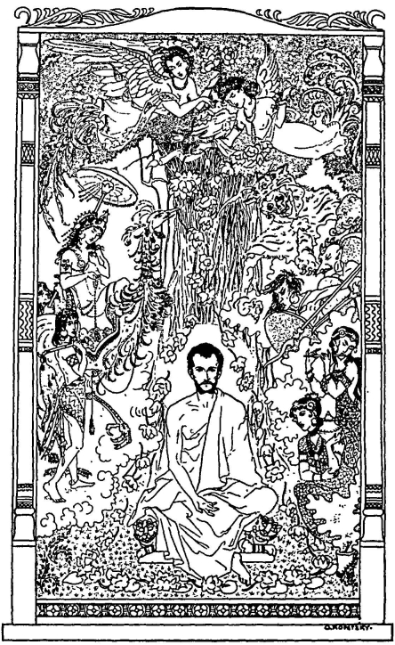 Upon the task of illustrating The Gospel of Buddha, I have spent three years, the first of which was entirely devoted to preparation. By the kind assistance of Dr. Hans Schnorr von Carolsfeld, Director of the Royal Court and State Library at Munich, I was enabled to make very extensive use of the treasures of this institution, and I am under great obligations to him for the courtesies extended to me. Above all I endeavored to obtain a solid foundation for my work by acquiring a clear conception of the personality of the Buddha from religious, historical and artistic standpoints and by familiarizing myself with all the Buddhist dogmas, symbols and religious observances.