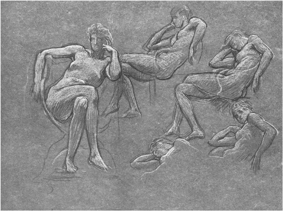 | 34. | Study for Group in the "Arts of Peace," 1873 Leighton House Collection. |