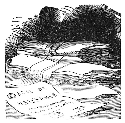 "Well, read first a copy of the paper which took the place of the birth-register of Paul Solange."
