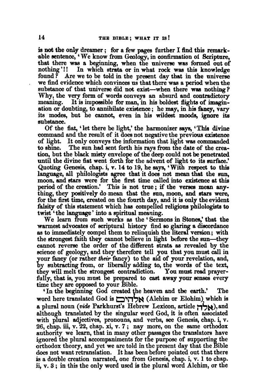 Previous to my analysis of the first chapter of Genesis, I shall quote from an able letter which appeared in a provincial paper a short time since, and in which I fully concur.
