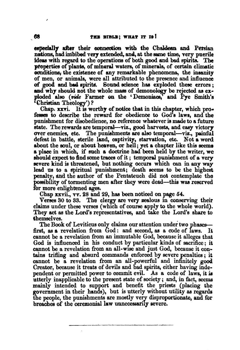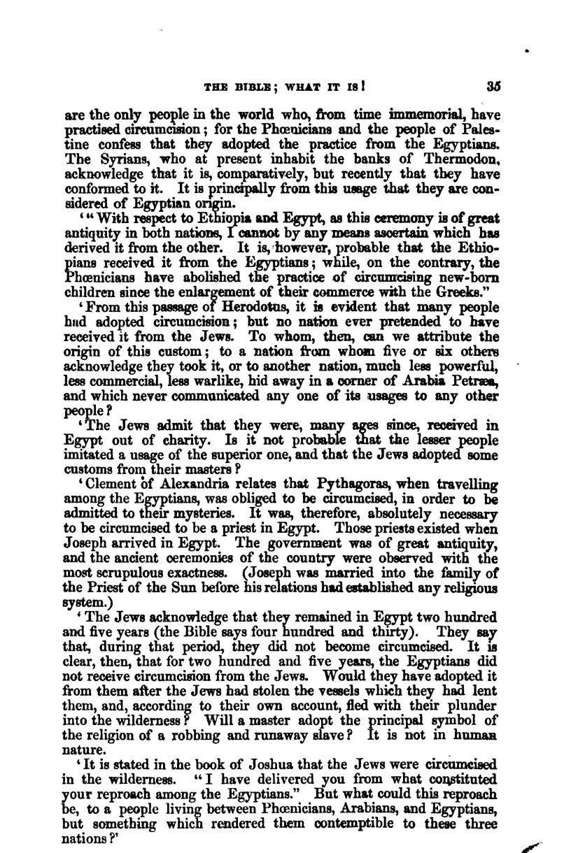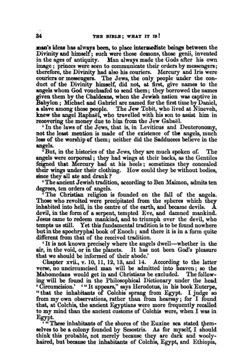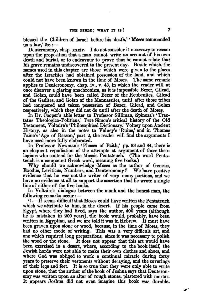 In Dr. Cooper's able letter to Professor Silliman, Spinoza's 'Tractates Theologico-Politicus,' Pere Simon's critical history of the Old Testament, Voltaire's 'Philosophical Dictionary,' Volney upon Ancient History, as also in the notes to Volney's 'Ruins,' and in Thomas Paine's 'Age of Reason,' part 2, the reader will find the arguments I have used more fully elaborated.